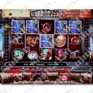 This Barbarossa game board by Astro has VGA graphics with 5 spinning reels and 9 play lines.