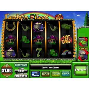 - Additional bonus features: Lucky’s Loot has a pick bonus; Spooky’s loot has random spooky reel manipulation, a wild pumpkin tossing during free spins, and a mystery icon; Wheel Deal has a prize wheel bonus and a mega wheel bonus.