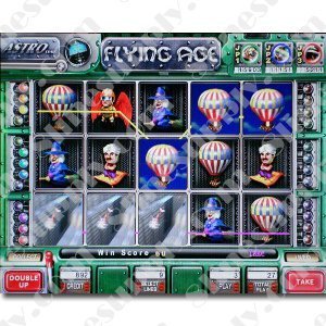 This Flying Age game board by Astro has VGA graphics with 5 spinning reels and 9 or 25 play lines.