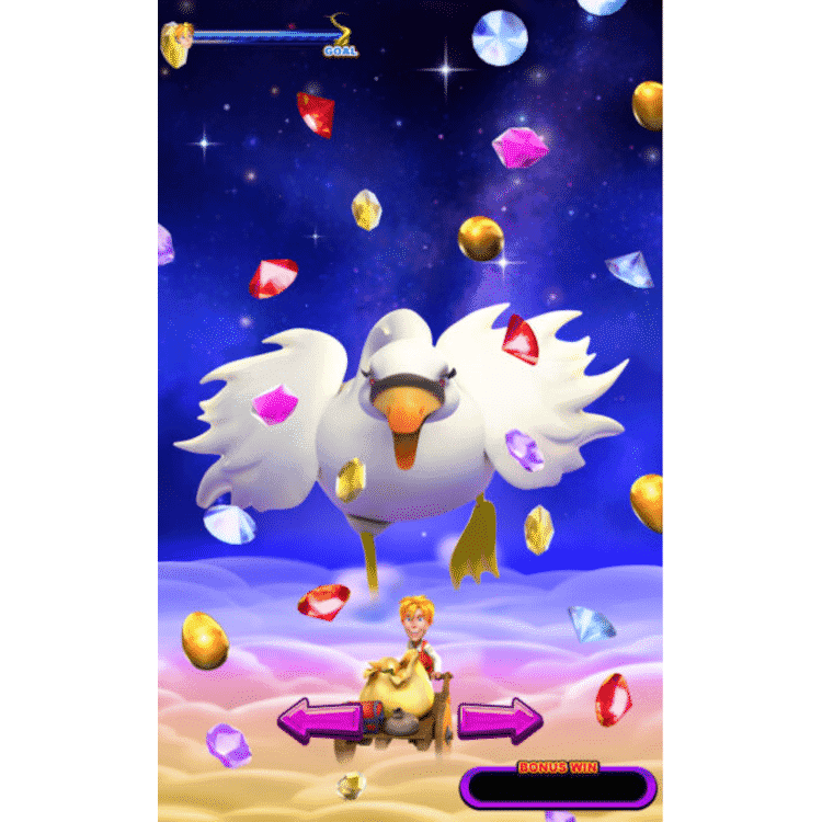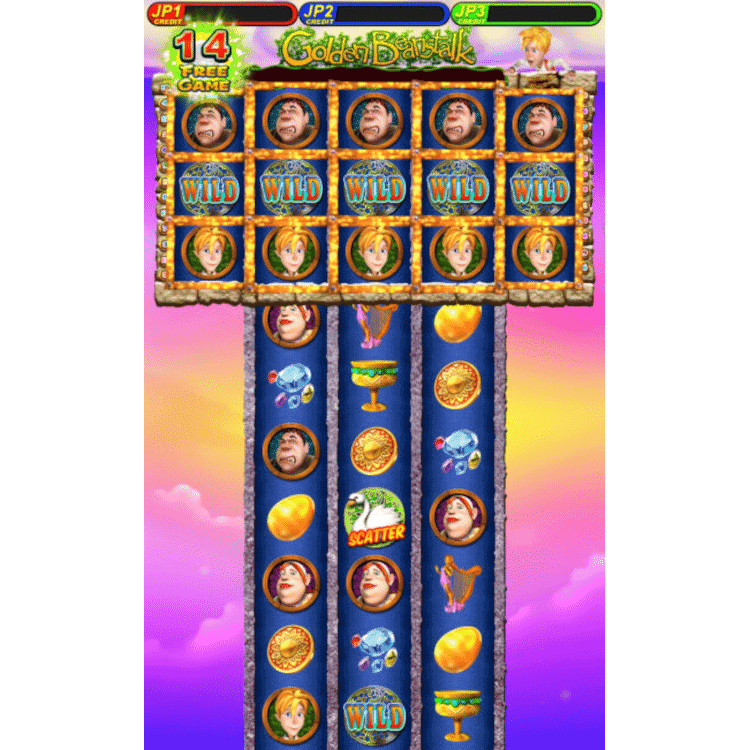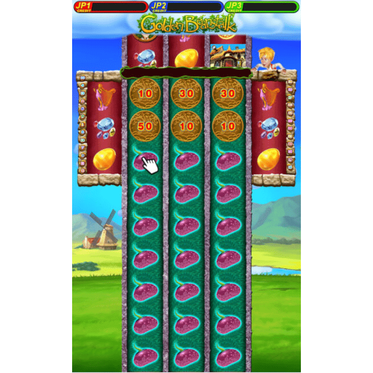 Golden Beanstalk by Borden – Vertical Game is a 5-reel and 25-line vertical game. The player wins when 3 or more of the same symbols lined up continuously from the left to right on the selected win lines. Wild symbols substitute for all symbols except Gold Bean, Purple Bean, Scatter, and Jackpot symbols. Scatter symbols only appear on reels 2 to 4. Any 3 triggers a free game for 15 times. Gold Bean symbols only appear on reels 2 to 4. Any 3 triggers a bonus game.