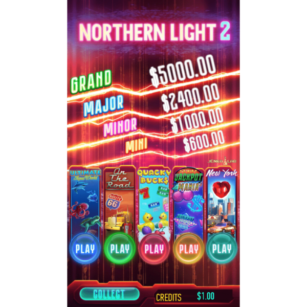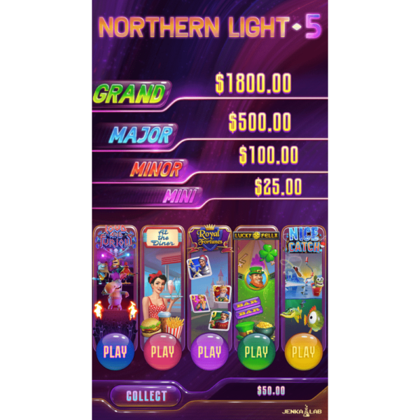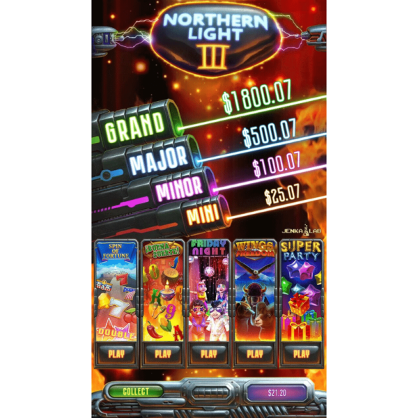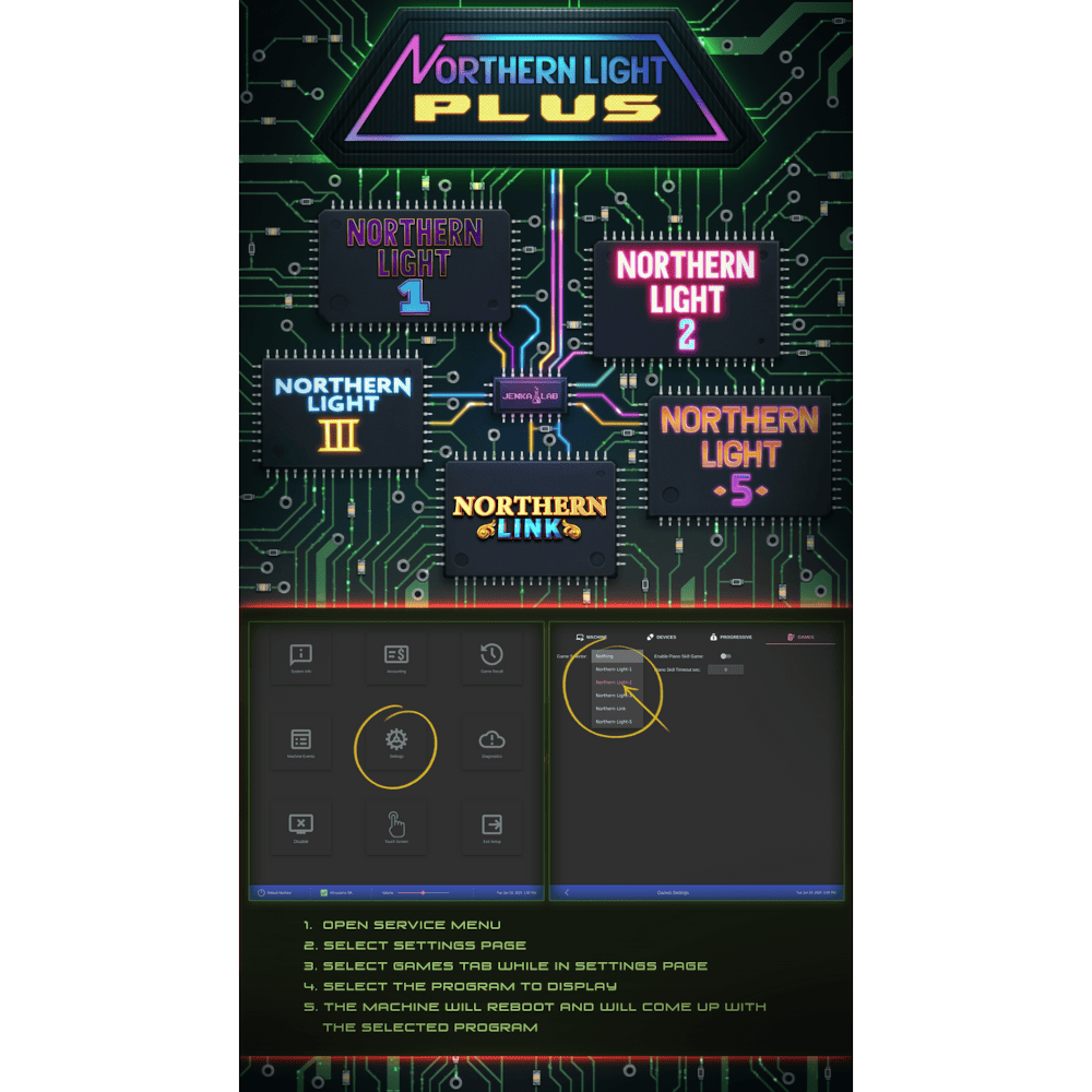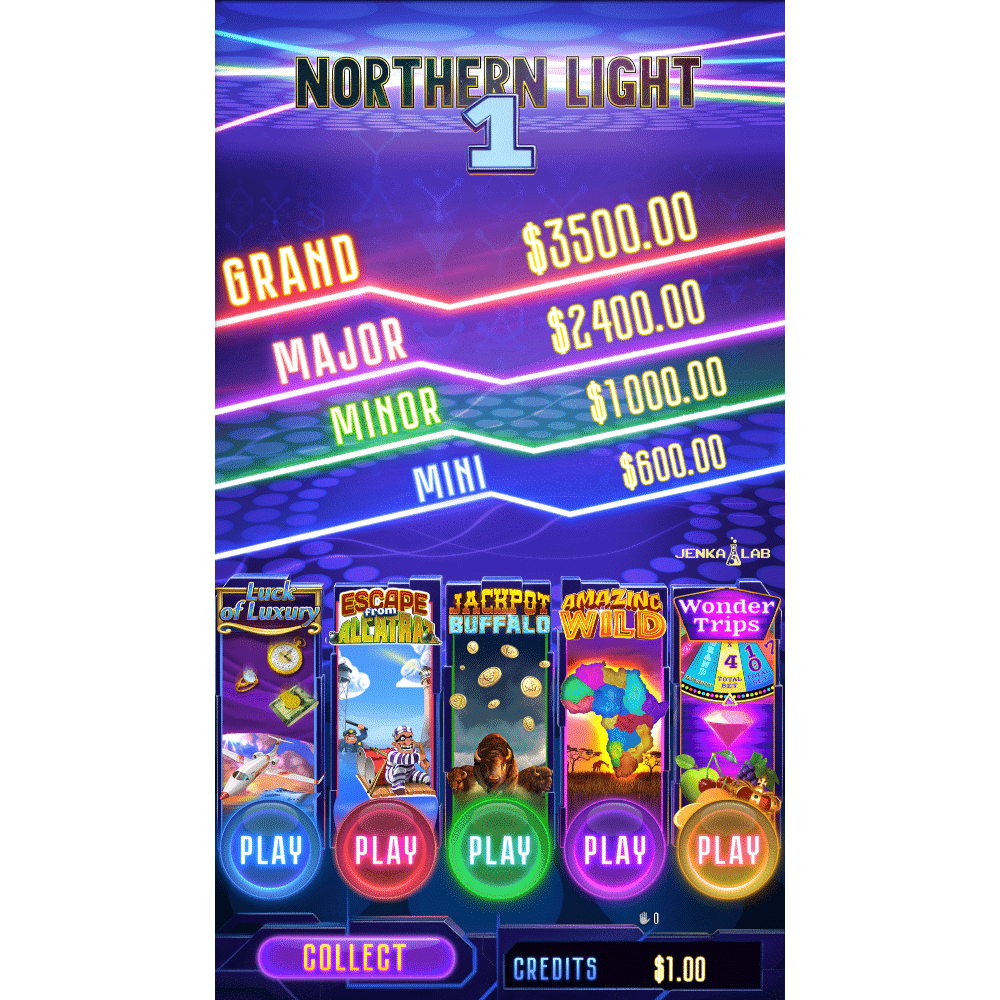 The Northern Light PLUS by Jenka Lab is a versatile 5-in-1 Northern Light multi-game that offers 5 COMPLETE Northern Light games. Operators can select one of the five Northern Light games in the settings. Each game is a different 5-in-1 multi-game, except Northern Link is a 9-in-1 multi-game. Don’t miss out on this exclusive release from Jenka Lab. Order yours today and enjoy the ultimate gaming experience!