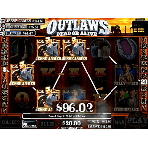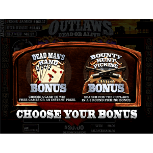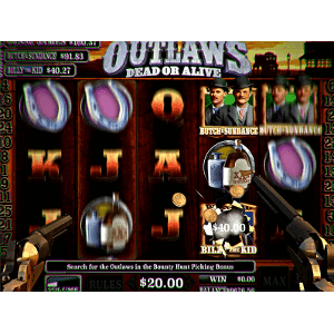 OUTLAWS Dead or Alive by Banilla Games has VGA graphics. It is a 25 Line 5 Reel Slot Game that has a Quick Draw Scatter Win Feature, 3 Round Bounty Hunt Picking Bonus, and Dead Man’s Hand Free Game Feature. You also get the option to retry bonuses for a chance of a higher win.