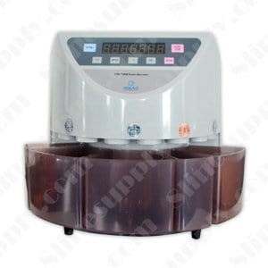 This Ribao CS-100 Electric Coin Counter/Sorter works quickly and is easy to use. It counts and sorts coins into separate compartments.
