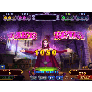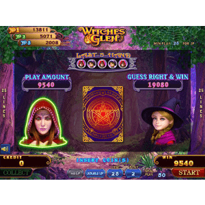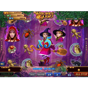 Witches Glen by IGS has XVGA High-Resolution graphics. This 25 Line Game Board includes the Broom Stick Feature which will either award you with Wild Symbols or let you choose your path through the woods collection gold coins. While going through the woods, players will also have a chance to enter the interactive bonus game. When the bonus game has completed, players will be offered the option to TAKE or RETRY.
